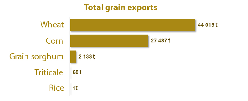 It is noteworthy that in the overall structure of January exports, the physical and value shares of grain group goods practically coincided: wheat – 60%, corn – 37%, sorghum – 3%.