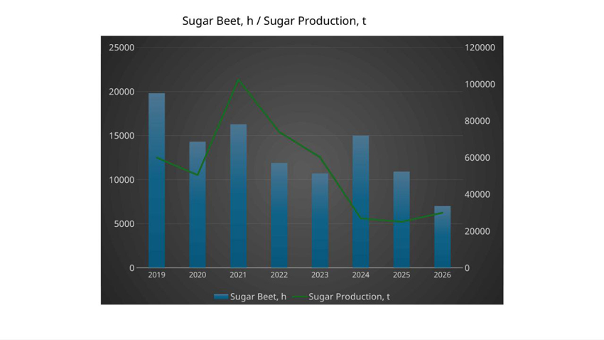 Apparently, this is not the bottom of the decline. Considering global market conditions, decisions by major EU sugar-market players, and the production and financial situation of Moldova’s sugar producers, one may assume that in spring the contracted areas for the 2026 crop will shrink substantially; in a pessimistic scenario—by 1.5 to 2 times, down to 5–6 thousand hectares.
