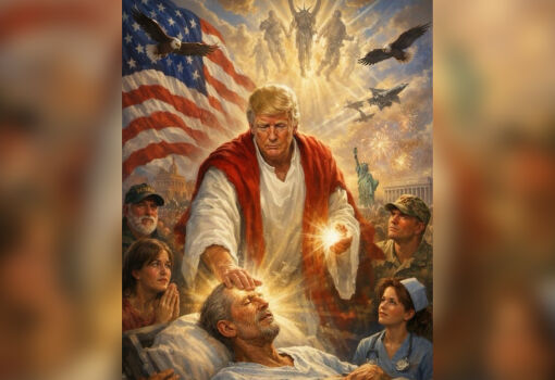Через несколько часов Дональд Трамп в той же соцсети опубликовал своё изображение в виде Иисуса Христа, исцеляющего больного.